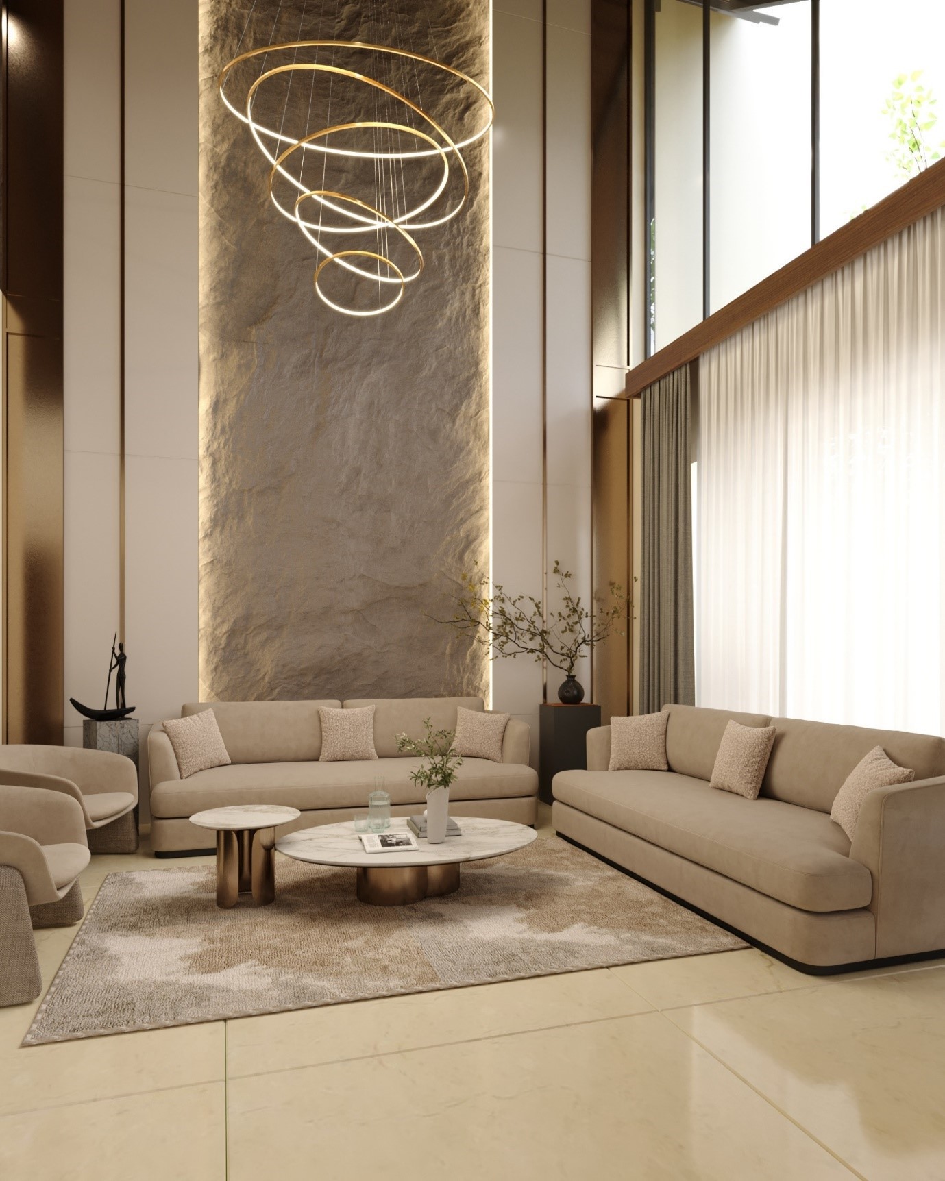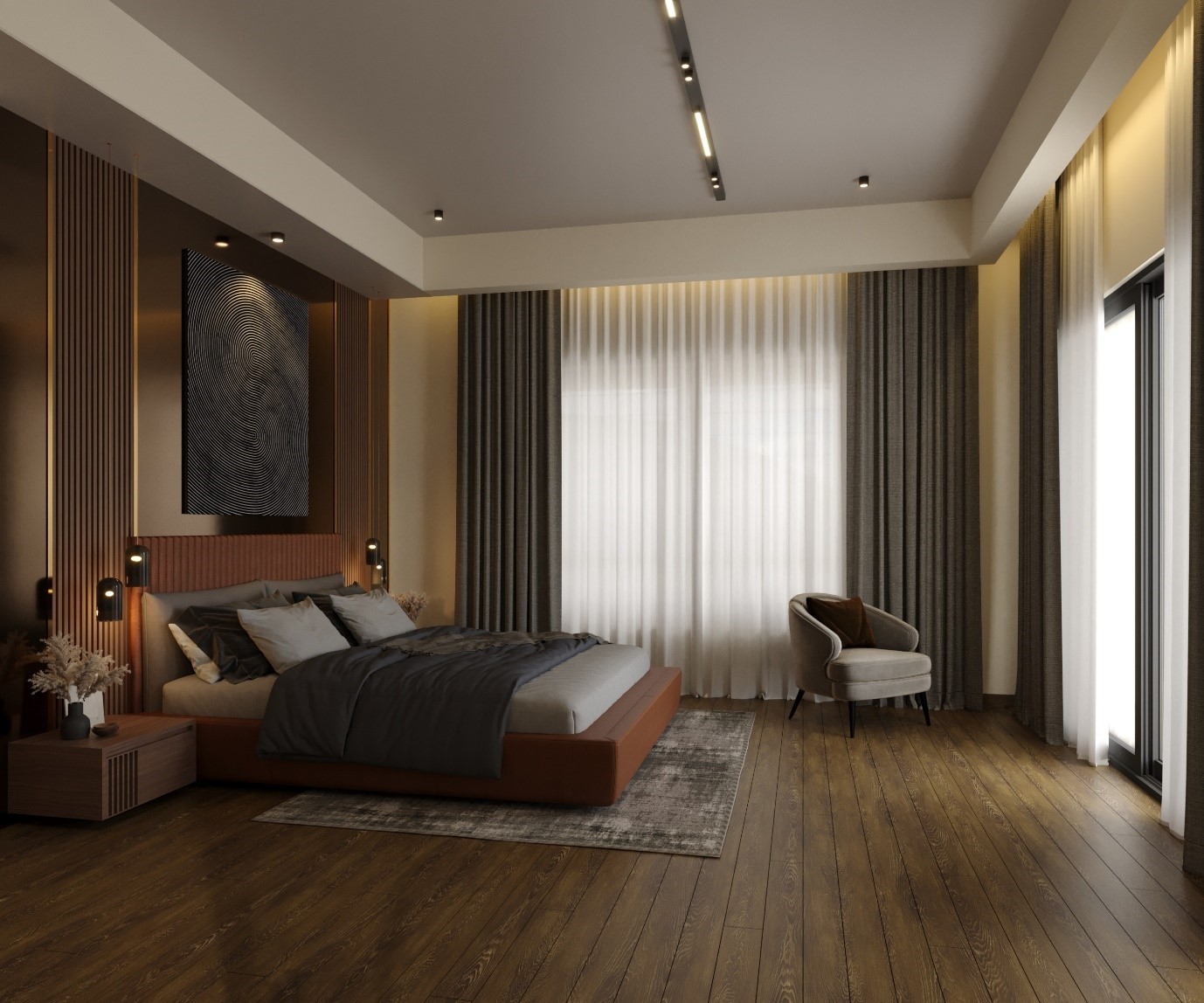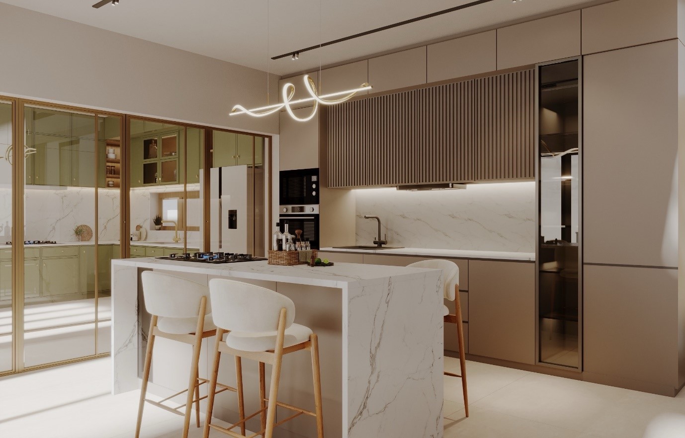The design masterfully integrates Arabic architectural elements within a traditional Kerala framework, achieving a harmonious blend without compromising the integrity of either style. Brass detailing and Moroccan-inspired flooring patterns are introduced, alongside high-quality teak furnishings and premium materials. This fusion enhances the spatial experience while respecting and preserving the cultural values of both architectural traditions. The result is a sophisticated synthesis that celebrates and elevates the unique characteristics of each style.